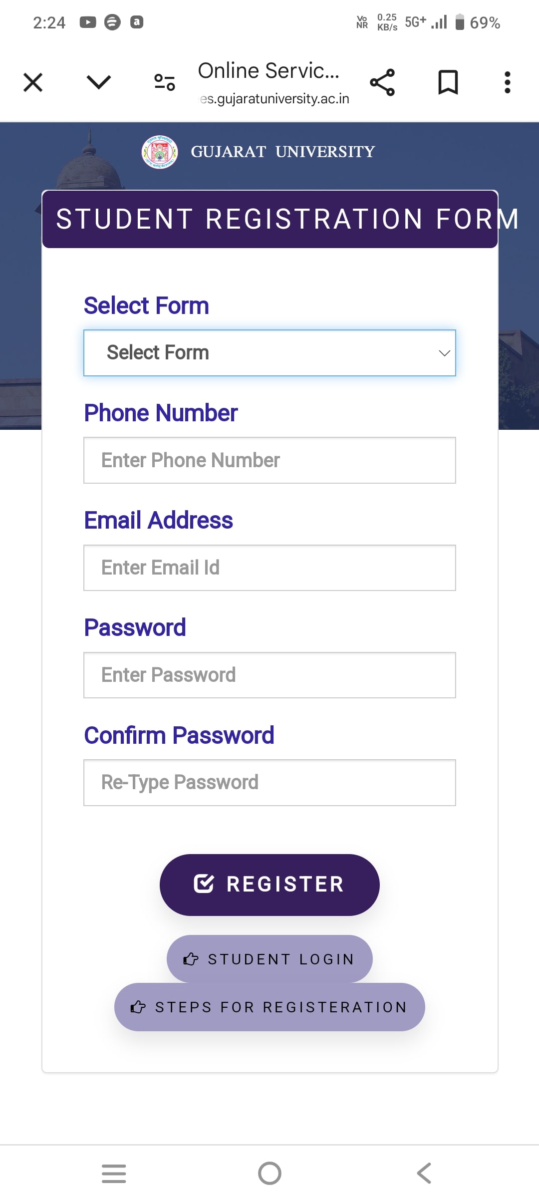 Step 7: You will get registration link from Gujarat University examination department in your registered email account which you have entered above ,If you didn’t get any email from Gujarat University, then please check into your SPAM email folder it might be there